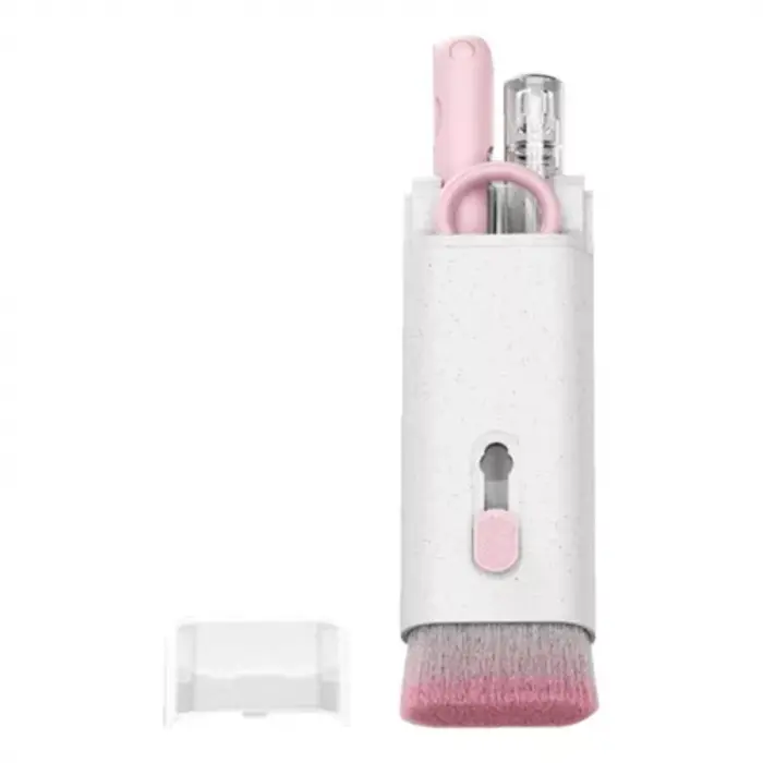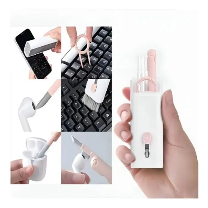 - Contiene un lápiz multiuso con un tubo de terciopelo en un extremo para limpiar hendijas y cavidades pequeñas y en su otro extremo una punta siliconada para atrapar todo tipo de suciedad en las cavidades pequeñas y un pequeño cepillo con cerdas fuertes para retirar el polvo.